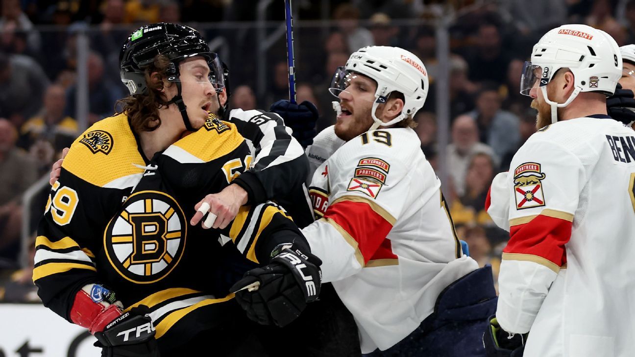 Arda Ocal, NHL analyst: Being physical — every Panthers player had at least one hit in Game 1, and that’s been a theme. Not giving the Bruins much space, being tough and competing in front of the net, especially Matthew Tkachuk, who has been terrific in his office.