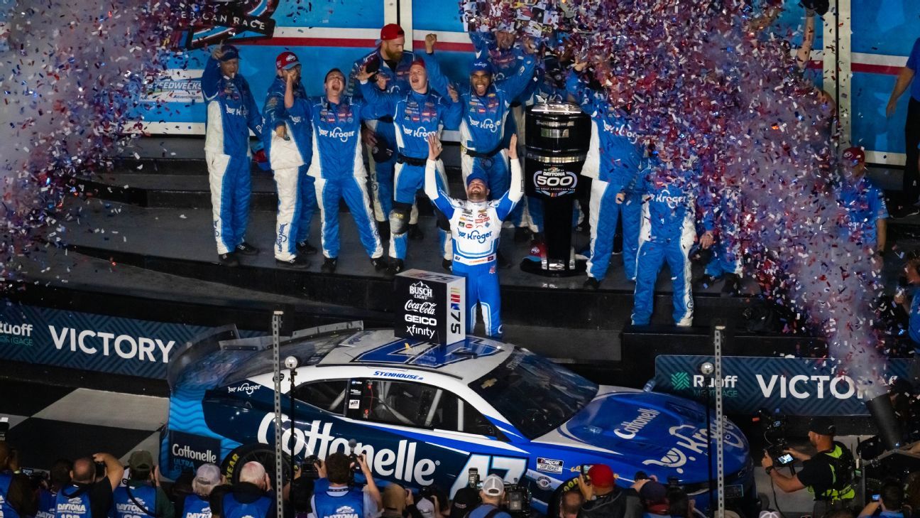 Stenhouse’s win for JTG Daugherty Racing was the third of his career. JTG is the first single-car team to win the Daytona 500 since Wood Brothers Racing did it with Trevor Bayne in 2011.
